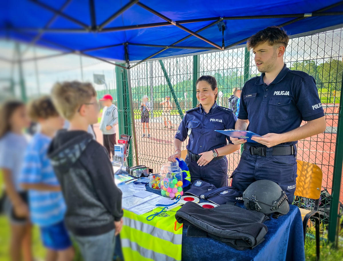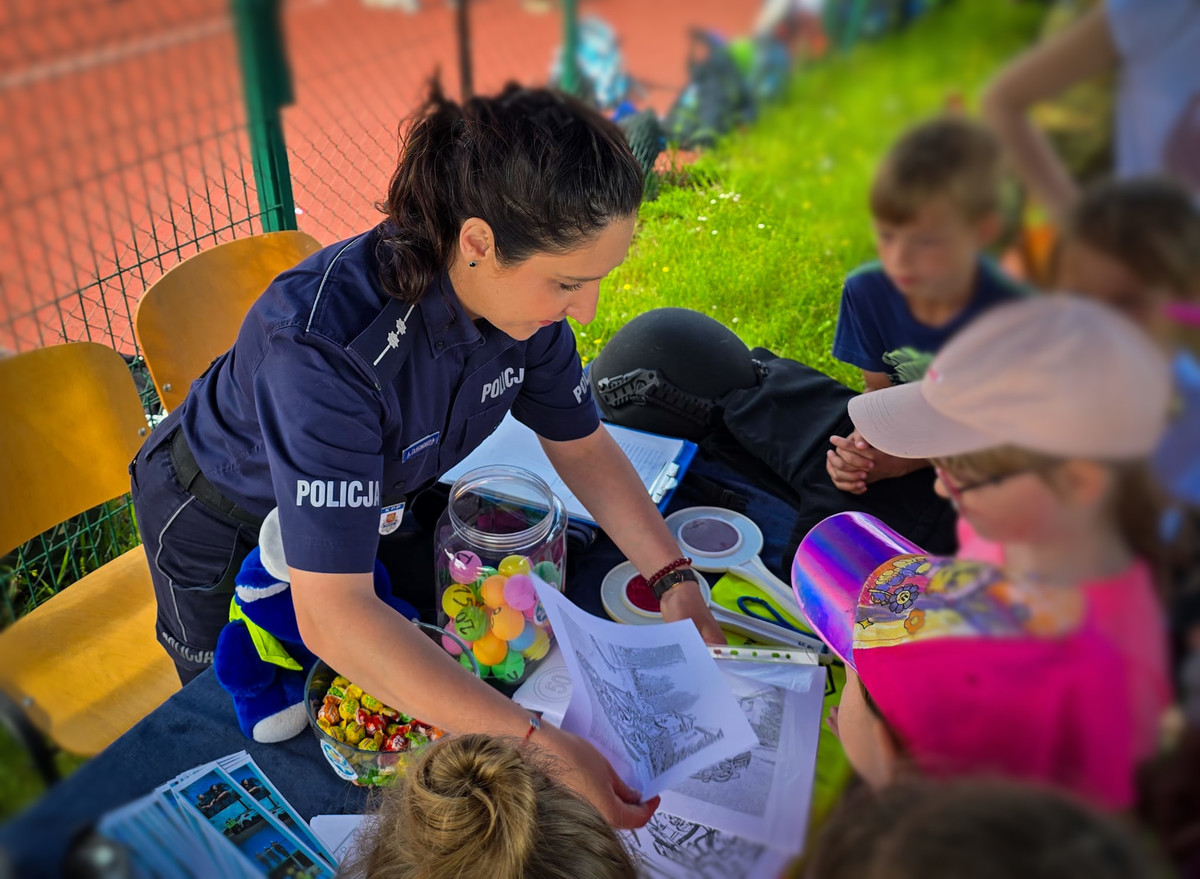 Mundurowy Dzień Dziecka zorganizowany przez dyrekcję Szkoły Podstawowej w Korycinie był nie lada atrakcją dla uczniów. Uczestnicy festynu mogli odwiedzić policyjne stoisko profilaktyczne i przy pomocy loterii wylosować pytanie dotyczące szeroko rozumianego bezpieczeństwa. Każda odpowiedź została nagrodzona drobnym upominkiem. Również pokaz tresury i umiejętności psów służbowych z Komendy Powiatowej z Sokółki zrobił na najmłodszych ogromne wrażenie. Dzieci i młodzież miały również okazję porozmawiać z funkcjonariuszami straży granicznej z Kuźnicy i strażakami z Sokółki. Ten dzień z pewnością na długo pozostanie w pamięci. Dziękujemy, że spędziliście z nami ten wyjątkowy czas.