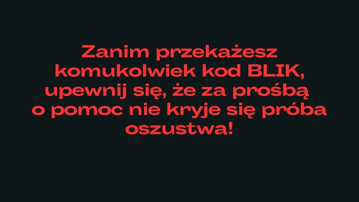 - Zanim przekażesz komukolwiek kod BLIK, upewnij się, że za prośbą o pomoc finansową nie kryje się próba oszustwa!