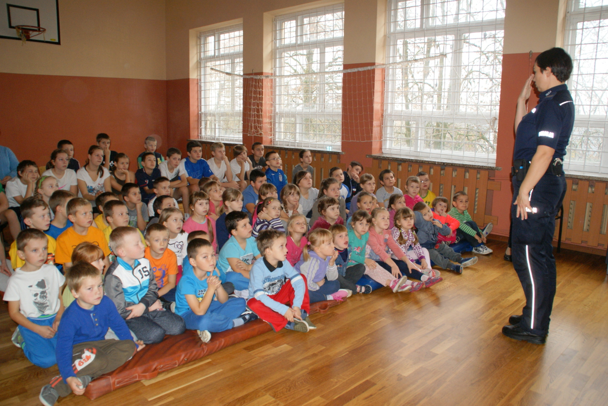 Wczoraj sokólscy policjanci spotkali się z uczniami Szkoły Podstawowej w Jacowlanach. Mundurowi rozmawiali z dziećmi na temat bezpieczeństwa w szczególności tego związanego z ruchem drogowym. Mundurowi przypomnieli małym słuchaczom o obowiązku noszenia elementów odblaskowych podczas poruszania się po drodze, po zmierzchu poza terenem zabudowanym. Dzieci chętnie odpowiadały na zadawane pytania, dzieląc się posiadaną wiedzą. Pilnie słuchały także i aktywnie uczestniczyły we wszystkich zabawach uczących odpowiednich nawyków i zachowań na drodze. W zajęciach tradycyjnie już wykorzystywany był zestaw „Autochodzik”, który sfinansowany został w ramach projektu „Bezpieczeństwo w ruchu drogowym” realizowanego w związku ze Szwajcarsko – Polskim Programem Współpracy. To dzięki niemu uczniowie mogli praktycznie poćwiczyć prawidłowe przechodzenie przez jezdnię na pasach z sygnalizacją świetlną. Robili to oczywiście pod wnikliwym okiem mundurowych. Na koniec spotkanie dzieci dostały od sokólskich policjantów odblaski, tak ważne w okresie jesienno-zimowym.