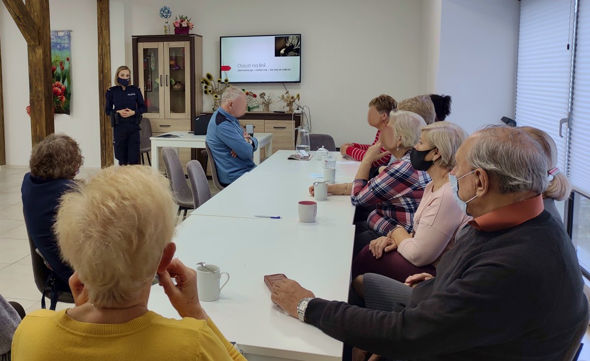 Sokólscy policjanci kontynuują cykl spotkań z seniorami. Tym razem rozmawiali z członkami Klubu Senior + na temat oszustw, których ofiarami zazwyczaj padają osoby starsze.